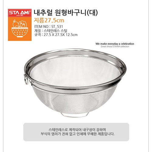Rổ inox cao cấp đai to Staami Hàn Quốc ST_531 không gỉ sét
